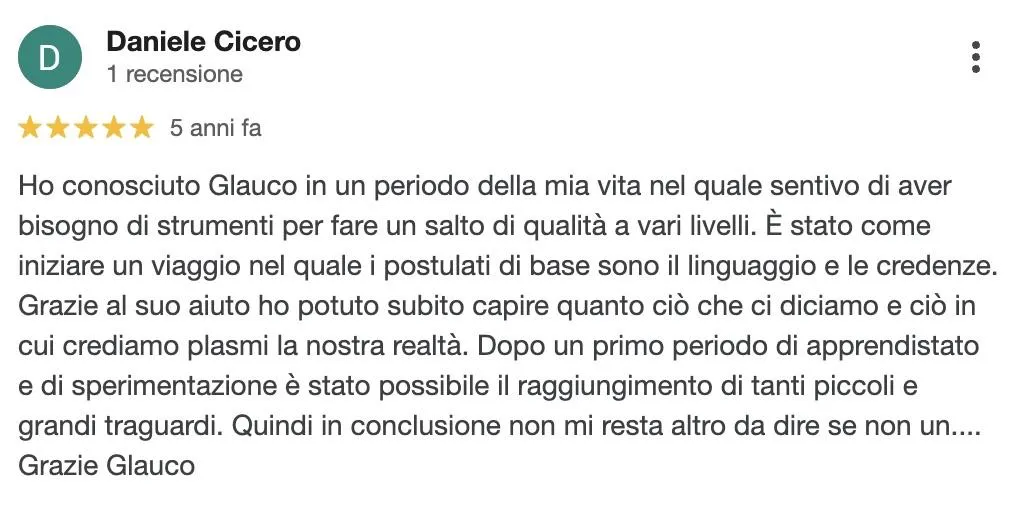 Glauco, da sempre interessato alla crescita personale, è uno dei pionieri in Italia nell’utilizzo di EFT e dell’ipnosi nell’ambito del coaching.